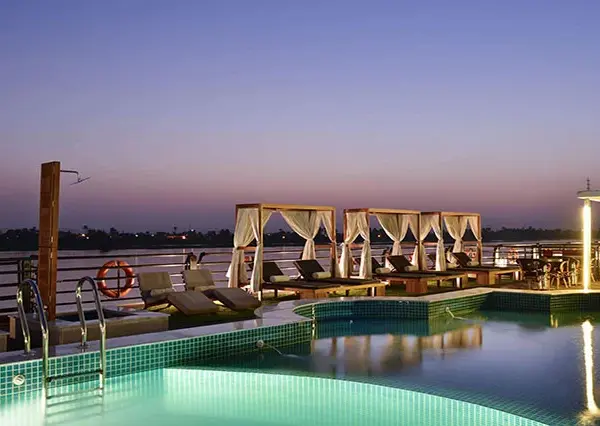 Experience true luxury in Egypt aboard the MS Mayfair Nile cruise sailing between Luxor and Aswan, where exceptional service is the standard on all of its 5 elegant decks. Enjoy tastefully decorated public spaces, a spacious sundeck for relaxation, and homey accommodations, all serviced by an attentive and friendly staff. Your trip on the Nile is sure to be memorable, not only for the impressive ruins that you will see but the comfort of your home along the way. Book MS Mayfair Nile Cruise from Luxor or Aswan.